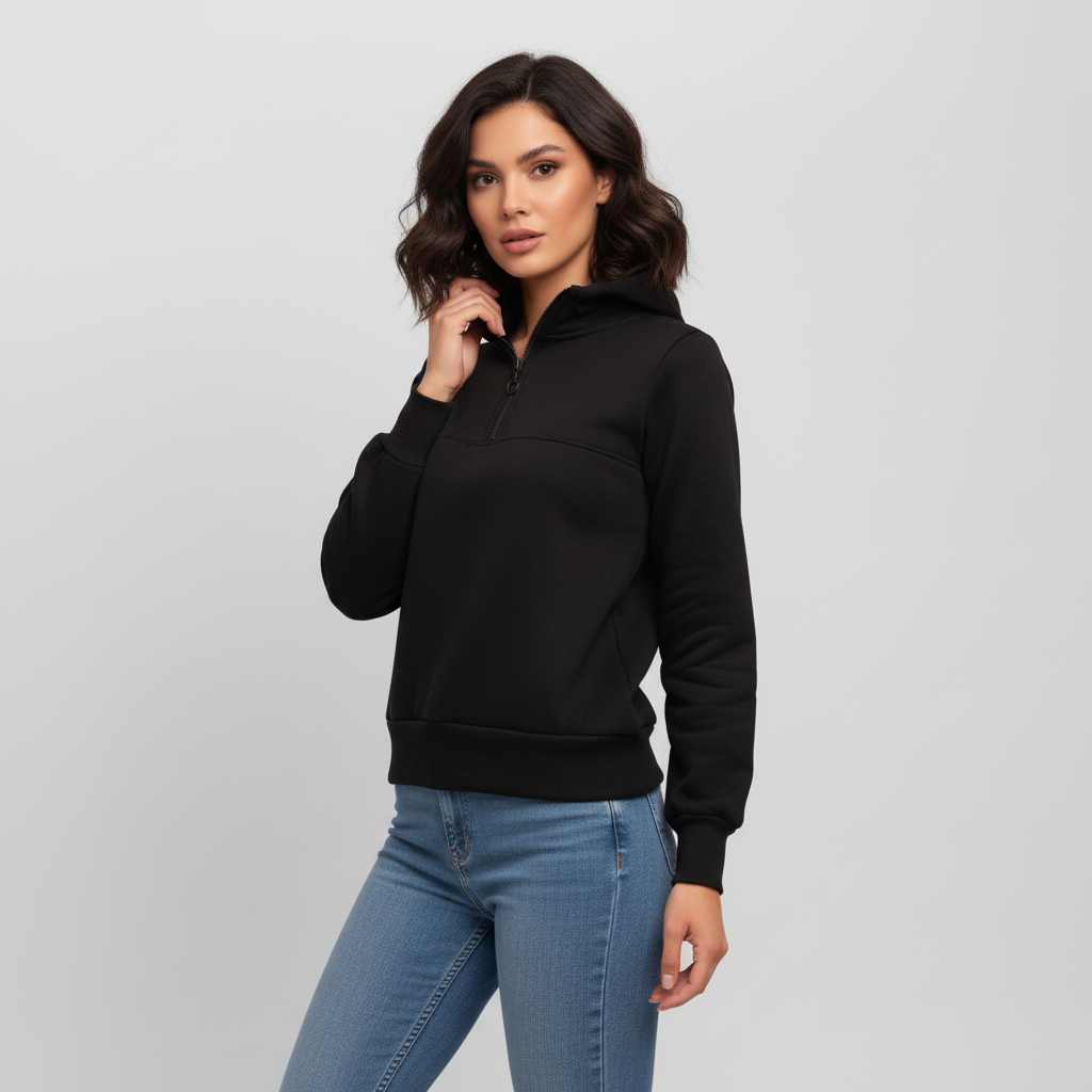 Unesi udobnost i stil u svoju svakodnevicu uz ovu ženstvenu crnu hoodie majicu. Izrađena od mekanog, kvalitetnog materijala, pruža savršenu ravnotežu između topline i prozračnosti, idealna za sve sezone.