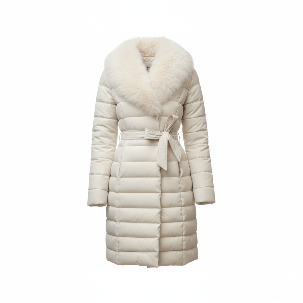 Luksuzna duga zimska jakna u nježnoj bijelo-krem nijansi, dizajnirana za savršen spoj elegancije i topline. Raskošni krzneni ovratnik daje jakni premium izgled, dok pojas u struku naglašava ženstvenu siluetu. Izrađena od mekanog, toplog i laganog materijala koji pruža maksimalnu udobnost u hladnim danima. Idealna za urbane kombinacije, posebne prilike i sve žene koje žele izgledati sofisticirano kroz cijelu zimu.