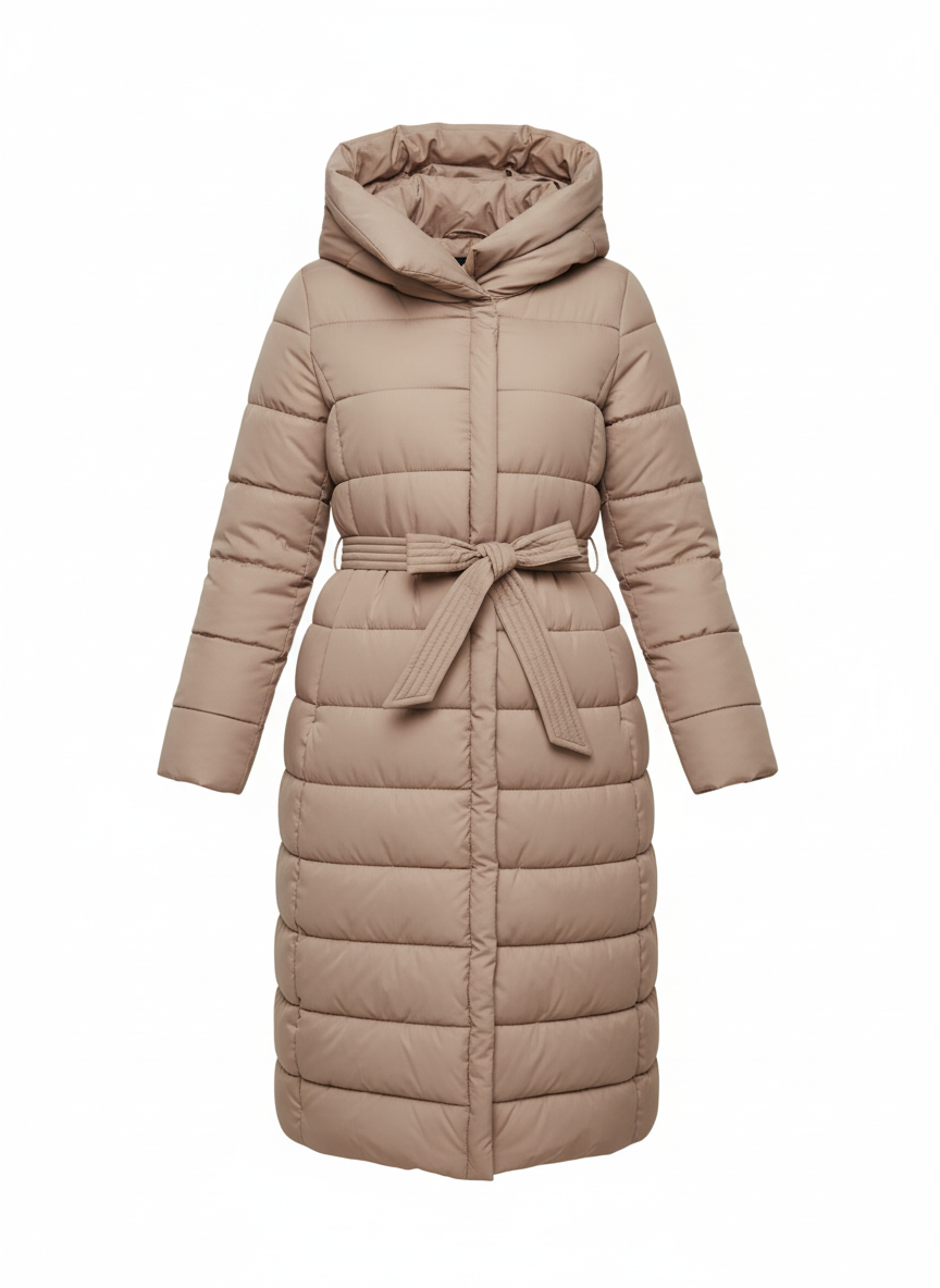 Duga, prošivena zimska jakna u prekrasnoj mocha/beige nijansi, savršena za žene koje vole sofisticiran, ali praktičan stil. Topla kapuljača, vezanje u struku i kvalitetna izolacija pružaju maksimalnu udobnost i zaštitu od hladnoće. Moderan kroj produžuje figuru, dok minimalistički detalji stvaraju elegantan, profinjen izgled. Idealna za svakodnevne zimske kombinacije i urbani chic stil.