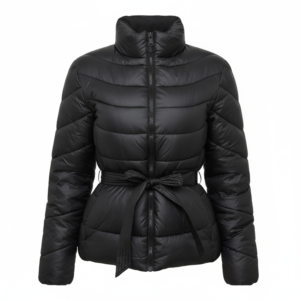 Elegantna kratka zimska jakna u luksuznoj crnoj boji, idealna za svaki moderan outfit. Model s visokim ovratnikom i trendi pojasom koji naglašava struk pruža savršenu kombinaciju topline i ženstvenog izgleda. Lagana, mekana i iznimno udobna, savršena je za svakodnevno nošenje, gradske kombinacije i večernje izlaske. Minimalistička, profinjena i uvijek u trendu – must-have komad za ovu sezonu.